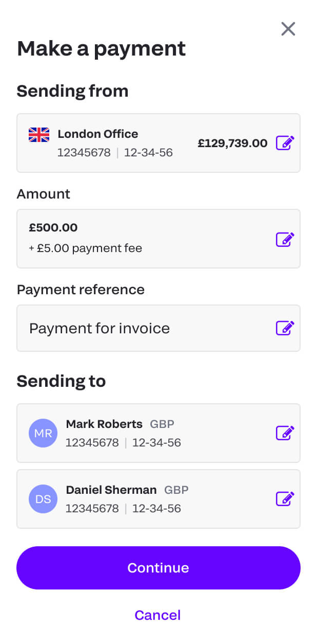 Save on time and admin by streamlining payments to your partners and suppliers. Split payments how you want, automate the process and accept payments in local currencies.